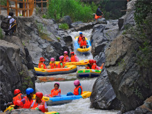 豫西大峽谷漂流----豫西大峽谷斥資近億元打造的國(guó)內(nèi)頂級(jí)漂流,集“巖洞漂流、暗河漂流、峽谷漂流、瀑布漂流、回旋漂流”五大特色于一體,漂流河全程6公里,穿越3處穿山巖洞,經(jīng)過(guò)2處回旋漂流,飛躍白龍瀑、九曲瀑、大淙瀑。從起漂碼頭到第一級(jí)渡口,約有一公里的平緩水域,水勢(shì)潺湲。其后水流順勢(shì)而下,則由不得你不瘋狂,不尖叫!漂流河道時(shí)而平緩安靜、波光粼粼如掩面嬌羞的少女;時(shí)而飛流直下,偏偏輕舟瞬時(shí)激起千層白浪,倏然之間,乖順的輕舟突然間就成了桀驁不順的烈馬,肌肉緊繃,左沖右撞。尖叫之聲隨之響徹于山谷之中,但卻動(dòng)聽如天籟之聲。