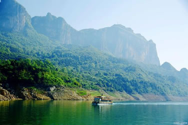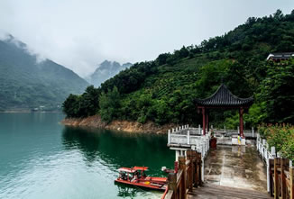 清江支流丹水,因其水淺,清澄得可見河床鋪滿的亂石,兩岸山巒起伏,郁郁蔥蔥,現(xiàn)成為游人漂流的絕佳去處。丹水最寬處有十幾米,最窄處僅四五米,大雨過后,河水水量較大,水流湍急,是漂流的好時(shí)候,但較危險(xiǎn)。2-3人乘坐一充氣皮筏從上游順流而下,在水面闊、水流緩處,可一邊蕩漿一邊仰望兩岸幽靜的景色,或低頭搜尋水底的小魚小蟹;而水面窄處,水流因亂石的阻礙變得浪花飛濺,駕著皮筏,一不小心,就會(huì)撞上大石頭,有時(shí)皮筏因水流太急而不可控制,那種緊張刺激的感受,是長期生活在城市中的人們很難體會(huì)到的。與小三峽、神農(nóng)溪漂流顯著不同的是,小三峽乘機(jī)動(dòng)船,機(jī)器的噪聲,很難讓人靜心去欣賞其山其水的瑰麗,神農(nóng)溪是由纖夫拉纖,將“豌豆角”型木船拉至上游,然后由船工撐船漂流而下,游人只能仰望山的幽奇,水的清亮,卻不能親自感受駕舟乘風(fēng)破浪的驚險(xiǎn)刺激。