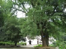 在三國赤壁古戰(zhàn)場景區(qū)內(nèi)的鳳雛庵前,有一棵千年古樹,此樹高數(shù)十米,主桿挺拔,枝繁葉茂,甚是壯觀,為周邊景致增色不少。據(jù)說這顆銀杏樹距今已有1800多年了,是龐統(tǒng)當(dāng)年親手栽種的。這顆古樹也是當(dāng)年親眼目睹赤壁之戰(zhàn)后唯一有生命的幸存者。更有傳說龐統(tǒng)死后變?yōu)轼P凰,金鸞后棲息于這顆銀杏樹上。