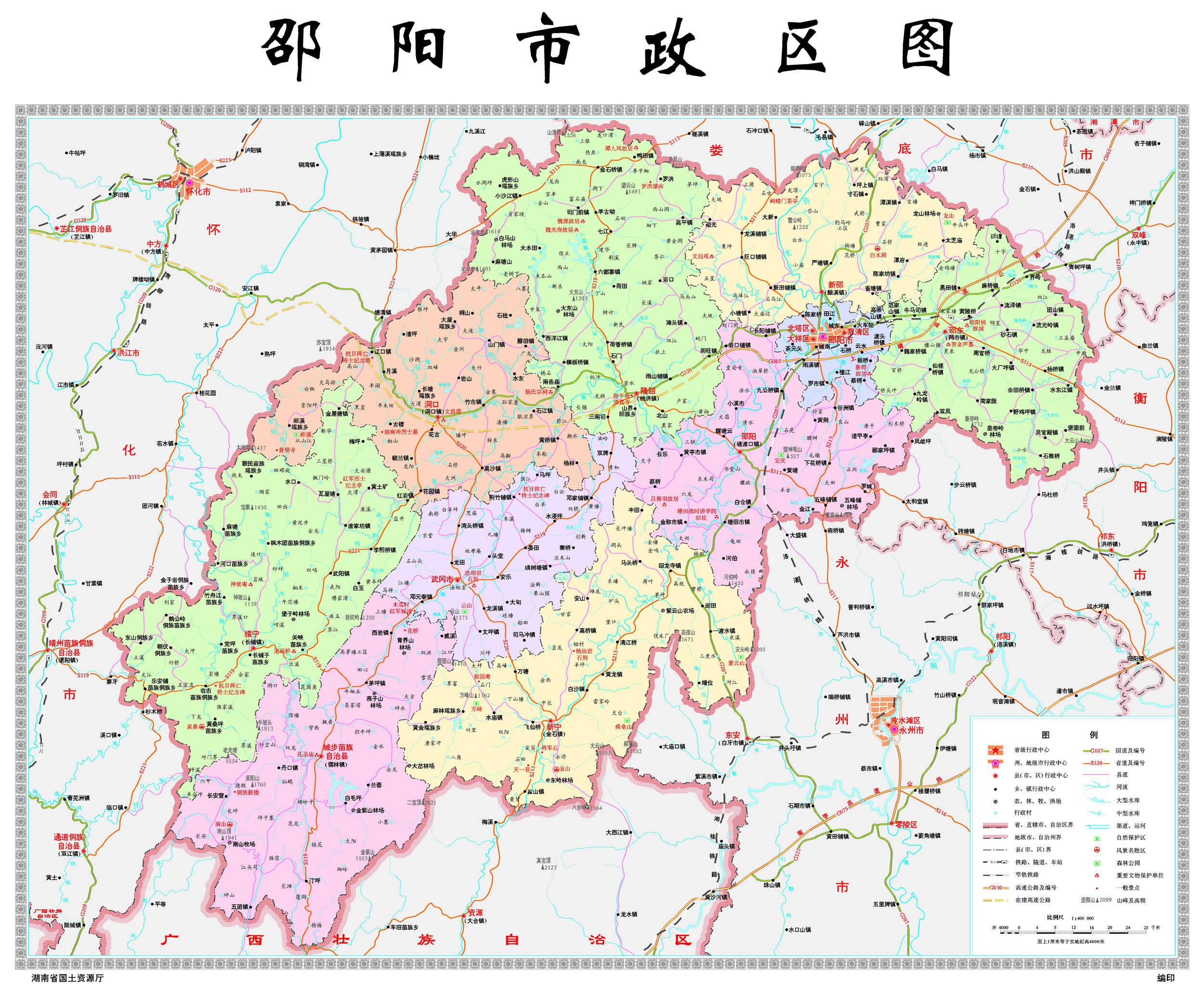 邵陽市歷史悠久,名傳瀟湘。境內(nèi)早在商代即有先民繁衍生息,西漢初置縣,歷經(jīng)昭陵、邵陵、邵陽、敏州、邵州、寶慶,最后定名為邵陽。清代,寶慶府城資江繞郭,邵水穿城,環(huán)城墻炮臺(tái)林立,加之山環(huán)水復(fù),攻之不易,留下“鐵打的寶慶”美名。邵陽有大小旅游資源三百余處,有世界自然遺產(chǎn)和AAAAA級景區(qū)新寧崀山、南山國家公園、綏寧黃桑、武岡云山、隆回虎形山、隆回魏源故居、洞口蔡鍔公館、邵東昭陽侯國城址、武岡法相巖等人文美景;曾入選第一批全國法治政府建設(shè)示范地區(qū)和項(xiàng)目名單、全國雙擁模范城(縣)名單、湖南省真抓實(shí)干成效明顯的地區(qū)名單。