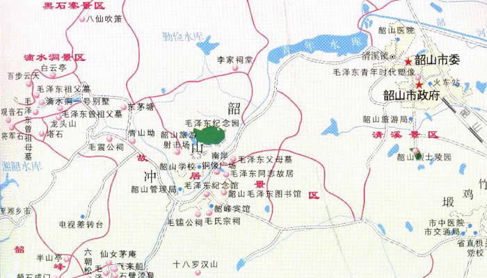 韶山是毛澤東同志青少年時期生活、學習、勞動和從事革命活動的地方。新中國建立以來,這里一直受到黨和國家的關(guān)心與重視,在黨的領(lǐng)導下,韶山經(jīng)過韶山人民半個多世紀的艱苦創(chuàng)業(yè),已由一個偏僻落后的山村,變?yōu)楣まr(nóng)業(yè)迅速發(fā)展,教育、科技、文化、衛(wèi)生水平普遍提高,紀念景點眾多、服務設施完備的國家級風景名勝區(qū)。管理機構(gòu):湖南省韶山管理局,由中共湖南省委派駐,正廳級,負責韶山紀念地和風景區(qū)的宣傳、接待、建設、保護、管理工作。韶山市,縣一級政府,1990年成立,轄區(qū)210平方公里。韶山每年接待海內(nèi)外游客100萬人次以上,是中國優(yōu)秀文明旅游城市,全國愛國主義教育示范基地;是訪湘人士首選和必選的旅游目的。韶山市市花為杜鵑花,杜鵑花代表著革命與幸福。
