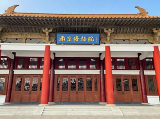 建國50年來,首先把原中央博物院留下的建筑未了工程,修繕而裝飾一新,屋頂鋪蓋金黃色琉璃瓦,添砌仿漢闕大門,修筑庭前馬路,綠化周圍環(huán)境,興建大殿前的月臺。門前面向通往東郊明孝陵和中山陵的林蔭大道,滬寧高速公路經(jīng)門口穿過而進(jìn)入市內(nèi)繁華地區(qū);門內(nèi)庭園廣闊,花木蔥蔥似錦,襯托出仿遼式宮殿建筑的陳列大殿的端嚴(yán)和壯觀。