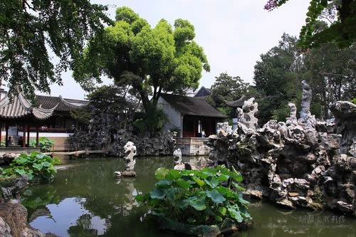 園內(nèi)水體聚中有分。聚合型的主體水池中心有亭佇立,曲橋連亭。在園西假山深處,山石做懸崖狀。一股清泉經(jīng)湖石三疊,奔瀉而下,形成了蘇州古典園林引人注目的人造瀑布。園中水景豐富,溪澗泉流,迂回于洞壑峰巒之間,隱約于林木之中,藏尾于山石洞穴。