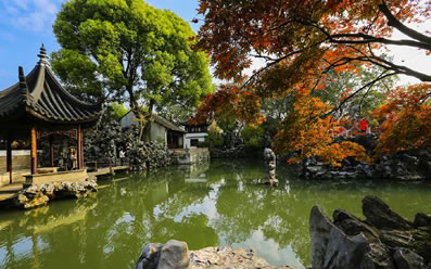 獅子林位于蘇州城內(nèi)東北部。因園內(nèi)石峰林立,多狀似獅子,故名“獅子林”。獅子林平面呈長方形,面積約15畝,林內(nèi)的湖石假山多且精美,建筑分布錯落有致,主要建筑有燕譽堂、見山樓、飛瀑亭、問梅閣等。