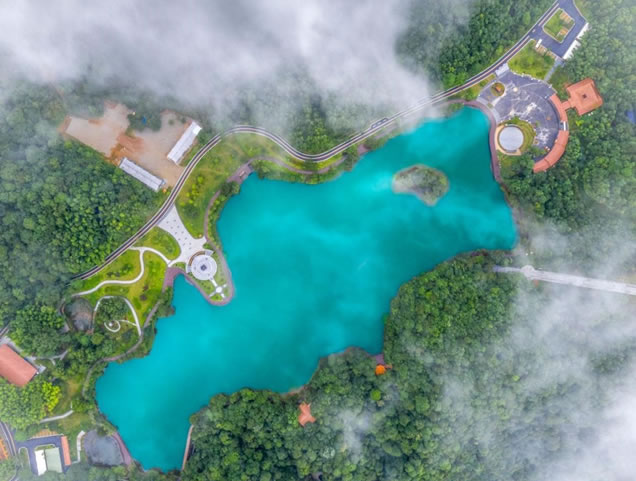 福鰲塘又稱“火山瑤池”,面積300余畝,海拔約900米,是一個天然的山間小盆地。在8億多年前,這里是個火山口,火山噴發(fā)后形成了一個巨大的環(huán)形坑口,雨水和周圍的森林縫隙水匯集到這里,形成了我們現(xiàn)在看到的這個湖。湖水常年保持一定的水位,從不枯竭,所以我們也叫它“源頭火山湖”。