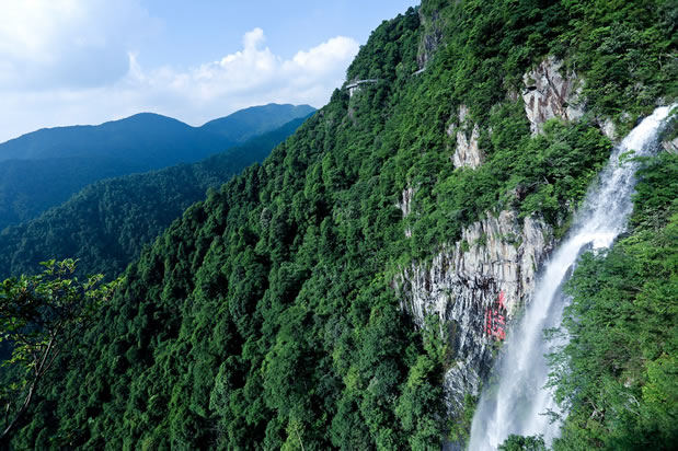 望天瀑,位于福鰲塘東北4公里處。在深山峽谷中瀑布飛流而下,站在瀑底潭邊仰望瀑布,只看見藍(lán)天白云,實(shí)為壯觀,故名“望天瀑”。