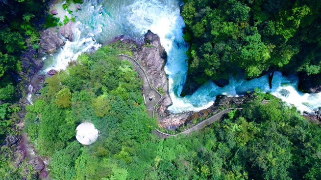 蝴蝶大峽谷(九曲溪),總長約6公里,是一條由地殼上升與侵蝕構(gòu)造下切形成的深切火山大峽谷。峽谷內(nèi)水系發(fā)達(dá),隨處可見火山流紋巖柱狀節(jié)理,包含清心瀑、南海龍?zhí)、知音?、金龜飲泉等核心景觀景點(diǎn),是山水于一體的精華所在。峽谷內(nèi)適宜各類蝴蝶繁衍和棲息,已知的蝴蝶種類有近三百種,其中包括喙鳳蝶、中國寬尾鳳蝶、金裳鳳蝶等十余種珍稀種類。