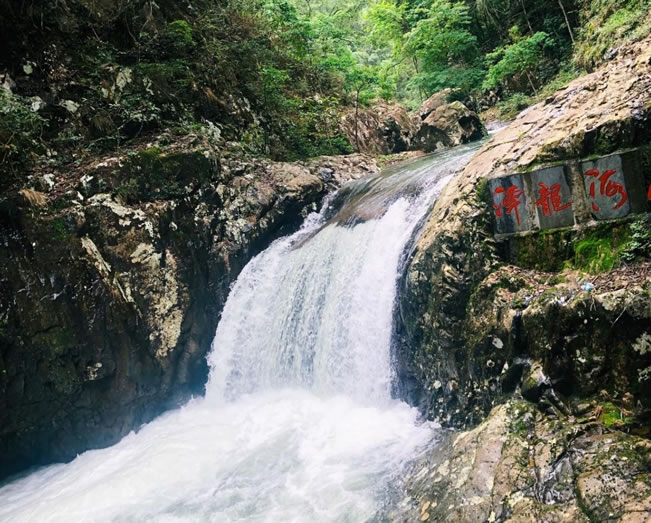 東江第一瀑由福鰲塘和山上大小溪流匯集而成,瀑布單級落差120多米,是目前景區(qū)發(fā)現(xiàn)單級落差最大的常流瀑布,氣勢雄偉,兩側(cè)峭壁凌空,古木參天。飛瀑前方視野開闊,遠(yuǎn)處青山疊翠,林海蒼茫,令人心曠神怡。石壁上東江源三個字是由全國政協(xié)原副主席葉選平題寫。