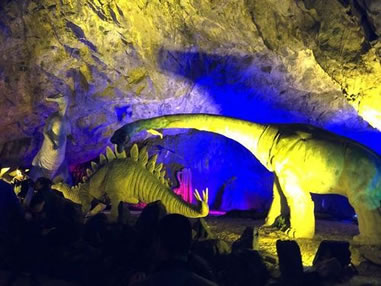 洞盡頭是一泓清潭,深不見底,水氣襲來,令人凄神寒骨。現(xiàn)利用旱洞獨(dú)特的資源,經(jīng)人工改造成為古生物宮,采用先進(jìn)的聲、光、電技術(shù),再現(xiàn)了古生物的進(jìn)化演變過程,是游覽和科普教育的最佳景觀。