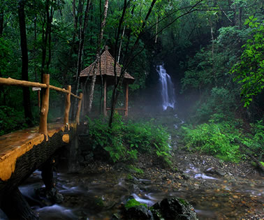 鳴翠谷聽起來就是一個很雅致的名字,以“翠”字著稱!傍Q”又突出動感。走在幽深的林間小路上,水聲鳥聲林濤聲聲聲入耳,飛動與靜謐結(jié)合,剛烈與溫柔相濟,柔與剛,動與靜自成一體,又融為一體。它是以原始的生態(tài)環(huán)境,一塵不染的清新空氣和來自大自然的天簌之音組成了神妙、奇幻、幽美的自然風(fēng)光。