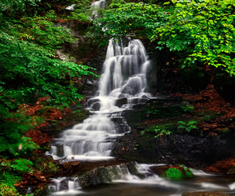 到秋季,葉子就會變成紅色,鮮艷欲滴,看上去就像一個天然盆景。圣泉,大家請看,涓涓細流順石而下,無論多旱的天它都細水長流,當?shù)仄摺耸畾q的老人都知道在以前的大旱年代,圣泉曾經(jīng)救過很多人的命,因此當?shù)乩习傩瞻阉Q作救命水和觀音水。如果用瓶子接一下,就會看到瓶壁上結(jié)了一層霜,像剛從冰箱里拿出來的一樣,人們都說;農(nóng)夫山泉有點甜,其實關(guān)門山山泉更香甜?催^了圣泉的纏綿,再來看一看晶簾瀑布的壯觀。晶簾瀑布就像一個水晶的簾子倒掛,關(guān)于它還有一個動人的傳說。瀑布兩側(cè)的山如刀削一樣,原來這兩座山是連在一起的,這邊也沒有瀑布的水。相傳,由于這兩座山相連在一起,山這面的百姓不得不到山那面的潭中取水,潭中有一條蛟龍,看到百姓擔水非常辛苦,于是有一天他竭盡全力指向大山,撞開了一條通道,河水就流了出來,人們的飲用水得到了解決,但是蛟龍卻因精疲力竭而死,人們?yōu)榱思o念這條蛟龍,便把大墻縫改為龍門峽,把這條瀑布稱為龍門峽的晶簾瀑布,下面的潭水稱為龍涎潭。