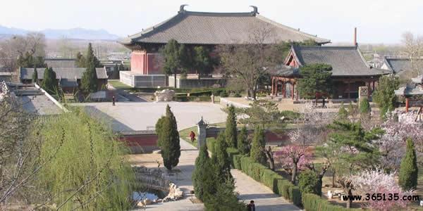 奉國寺:坐落在遼寧省義縣城內,始建于遼開泰九年(公元1020年)因殿內塑有七尊大佛,又俗稱大佛寺。奉國寺由山門、牌坊、無量殿、鐘亭、碑亭、大雄殿、西宮禪院等古建筑構成,占地3萬平方米,是一座宏偉壯觀,保存較為完整的古代寺院。大雄殿位于中軸線的北端,面寬9間,通長55米,進深5間,通寬33米,總高度24米,建筑面積1800多平方米。它不僅是國內遼代遺存最大的木構建筑,因其大雄殿規(guī)模面積全國最大,又堪稱中國寺院第一大雄寶殿。