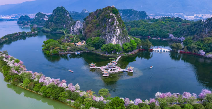 - 亮點(diǎn):以喀斯特溶巖地貌的巖峰、湖泊景觀為主要特色,包括天柱巖、玉屏巖、石室?guī)r等七座石灰?guī)r山峰,以及中心湖、仙女湖、里湖、青蓮湖和波海湖等五個(gè)湖泊。游客可在此欣賞到壯觀的巖峰和清澈的湖水,感受大自然的鬼斧神工。