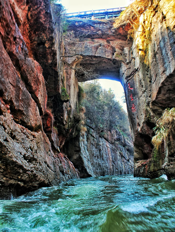 - 從景區(qū)東門進入,依次游覽天生橋、胭脂河。