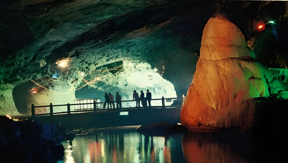 - 洞內(nèi)有中國最大的地下河,全長400米,水深1-10米,可容納萬余人。