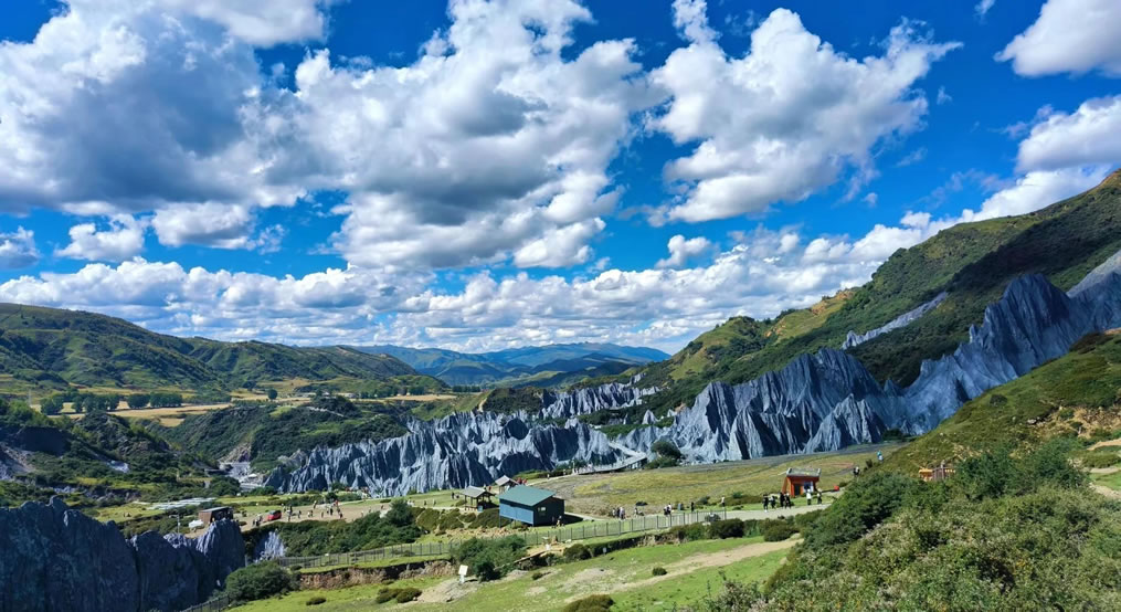 墨石公園景區(qū),位于四川省甘孜藏族自治州道孚縣八美鎮(zhèn)中古村與卡瑪村交界處。核心景區(qū)范圍4.7平方千米,處于大香格里拉旅游圈內(nèi),是四川省旅游西環(huán)線、甘孜州環(huán)貢嘎山兩小時(shí)旅游經(jīng)濟(jì)圈的重要節(jié)點(diǎn)和康北民俗文化旅游線的起點(diǎn)。墨石公園景區(qū)由于地形獨(dú)特、構(gòu)造復(fù)雜被相關(guān)專家學(xué)者是稱為“地質(zhì)學(xué)上的百慕大”。墨石公園景區(qū)的主體是糜棱巖,因康定道孚爐霍一帶是屬于鮮水河斷裂帶,斷裂帶中的巖石受到擠壓、剪切、發(fā)生破碎糜化后形成了石林的主體糜棱巖。墨石公園景區(qū)擁有沙棘、蟲草、貝母、大黃、三顆針等植物資源和喜馬拉雅旱獺、盤羊、細(xì)嘴松雞、藏馬雞、巖羊等高原野生動(dòng)物。