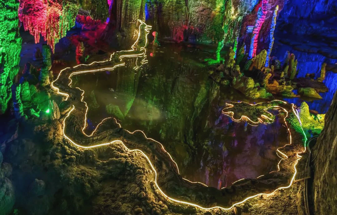 - 龍母后宮:鐘乳石密度達(dá)每立方米5根,燈光映射下呈現(xiàn)翡翠色光澤