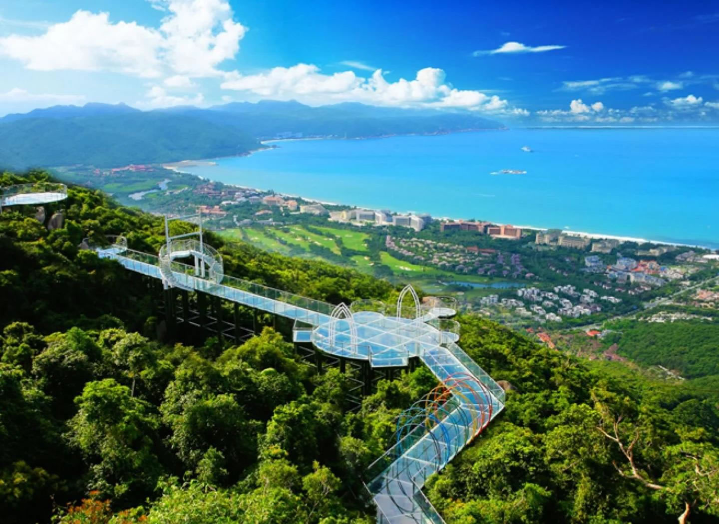 - 全海景玻璃棧橋:海拔450米,全長400米,360度俯瞰亞龍灣、海棠灣、三亞灣壯麗海景,透明玻璃設(shè)計(jì)帶來極致刺激體驗(yàn)。