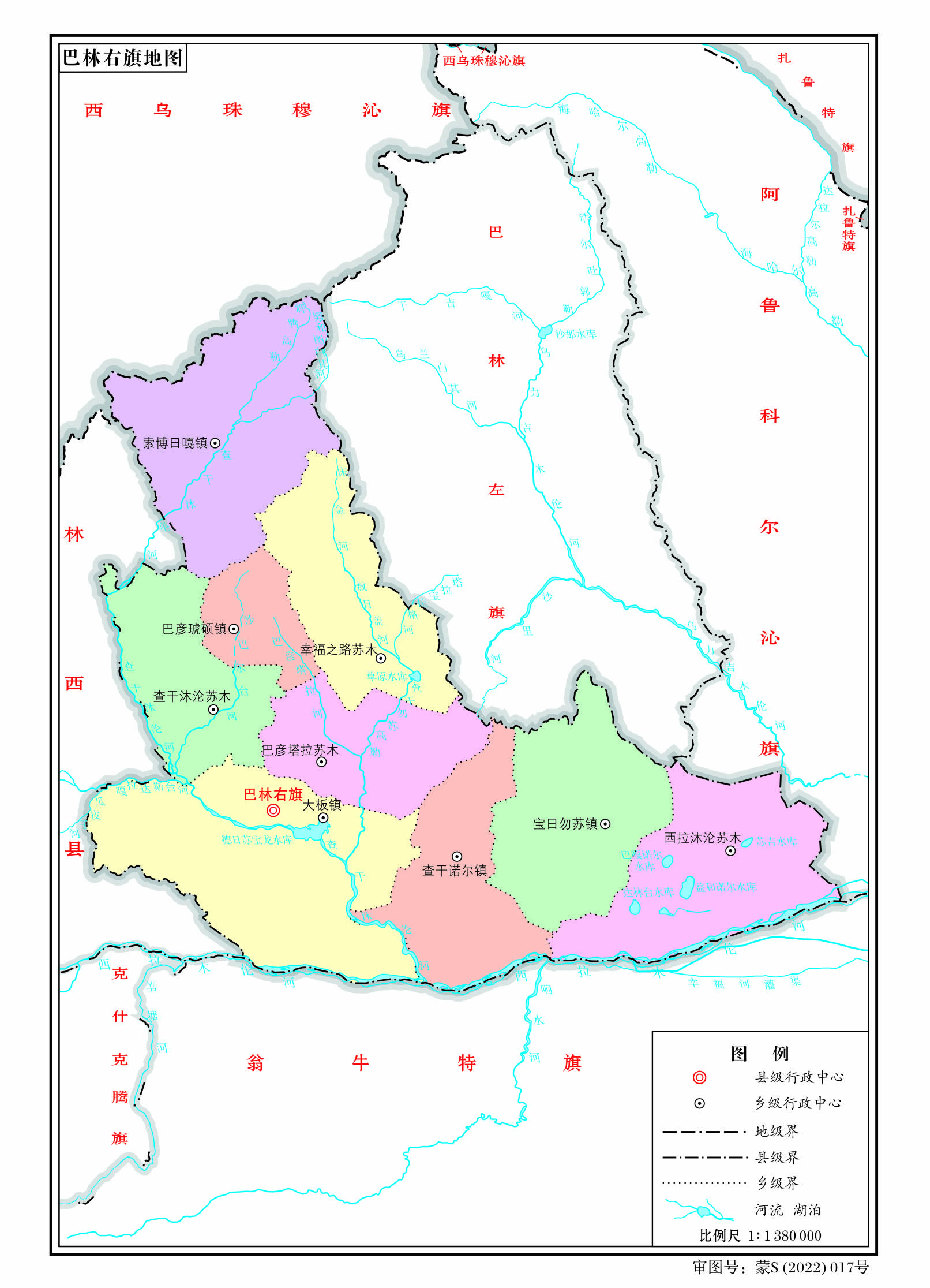 鎮(zhèn):大板鎮(zhèn)、巴彥琥碩鎮(zhèn)、寶日勿蘇鎮(zhèn)、巴彥漢鎮(zhèn)