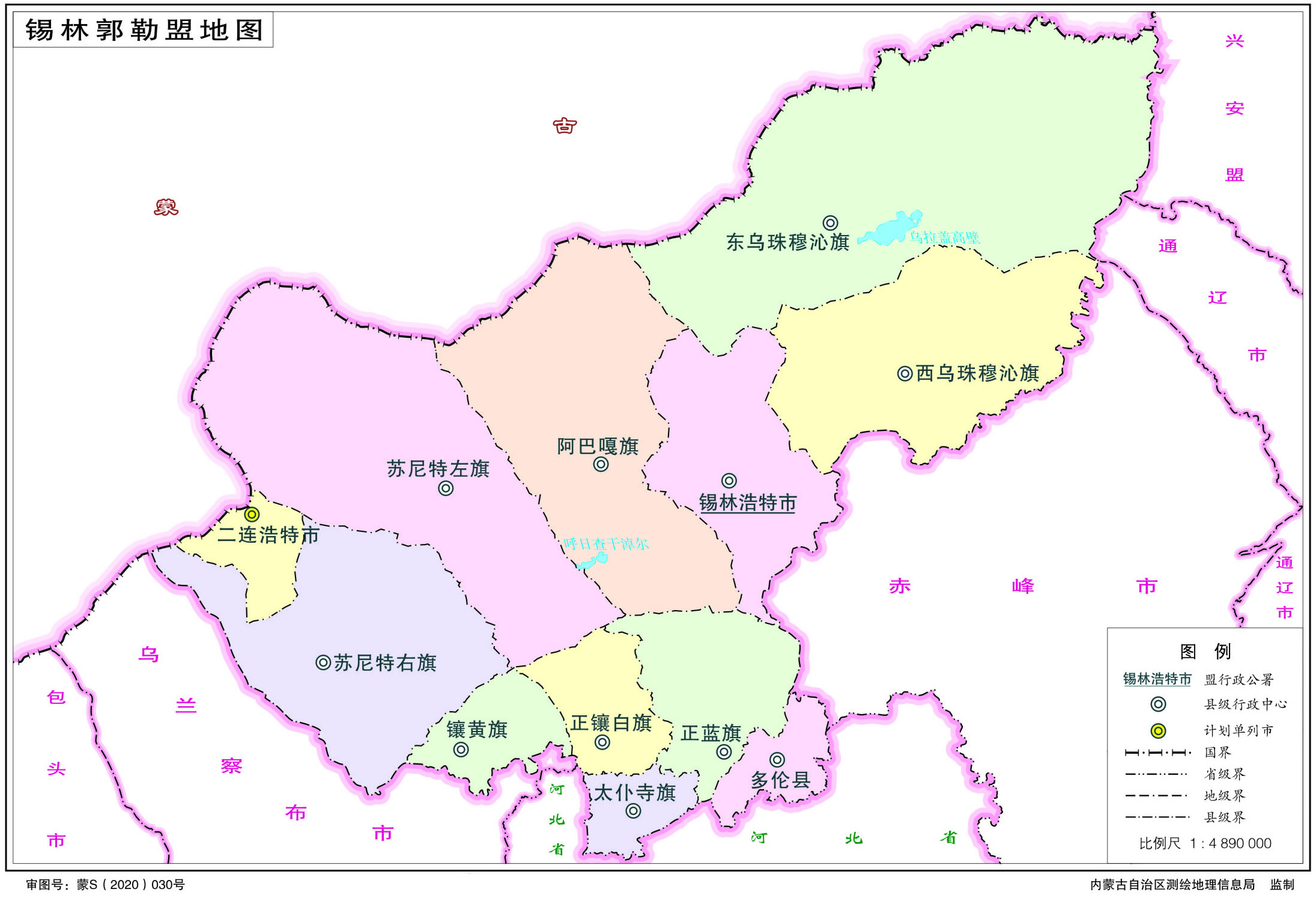 錫林郭勒盟轄2個縣級市、1個縣、9個旗、1個管理區(qū):