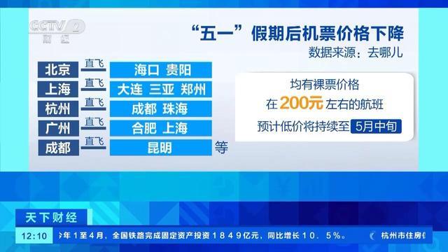 “五一”假期過后,多條熱門航線的機(jī)票價格大幅下降,其中部分低至一折左右。
