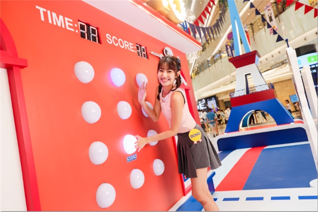 4.7米高的紅磨坊那極具標(biāo)志性的紅色配上璀璨金色亮燈MOKO字樣,非常的搶眼。紅磨坊前設(shè)置擊劍場,由“無敵劍神”及“世一劍后”坐陣,邀請游客參與這場反應(yīng)與速度的挑戰(zhàn),游戲限時(shí)30秒,隨著墻上拍拍燈隨機(jī)亮起,每按下一盞亮燈即可得分,讓游客在充滿歡樂的挑戰(zhàn)中,看看自己是否有成為新一代劍神劍后的實(shí)力。