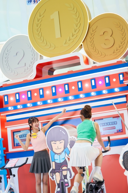 寓意慶祝勝利的凱旋門上方豎立著所有運(yùn)動員都渴望于這國際體壇舞臺贏取的金銀銅牌,寄托了對我國運(yùn)動員的美好祝福,游客更可參與單車互動競技游戲,踏上單車裝置與現(xiàn)場“小女車神”齊齊破風(fēng),以最快速度完成200米計(jì)時(shí)賽競逐“車神”寶座。