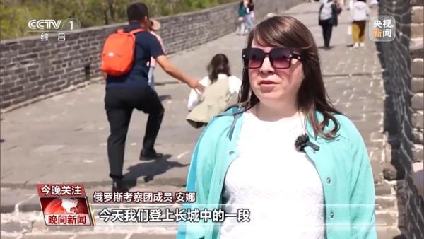 俄羅斯考察團(tuán)成員 安娜:今天我們登上長(zhǎng)城中的一段,我的感受非常棒。這段長(zhǎng)城登起來(lái)不算太累,這點(diǎn)很好。