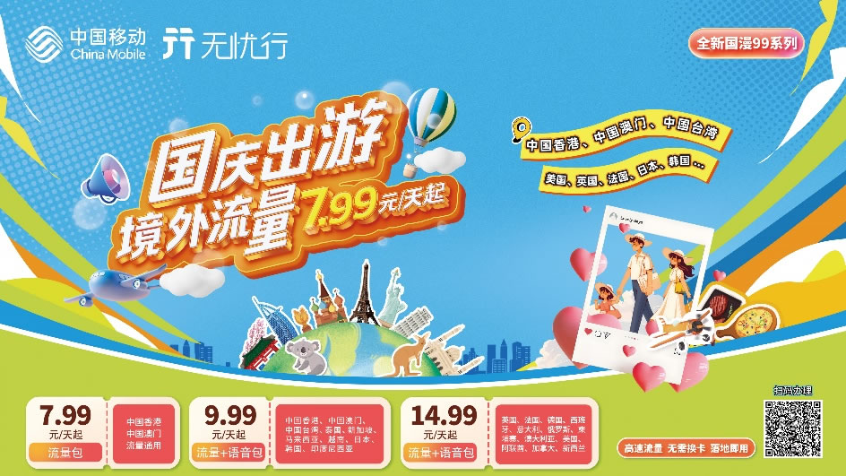 國(guó)慶長(zhǎng)假說(shuō)走就走,境外流量低至每天7.99元起