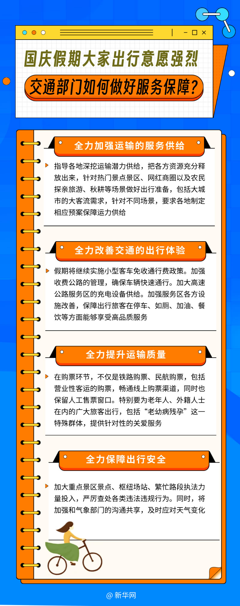 面對“十一”假期大家強(qiáng)烈的出行意愿,交通運輸部門如何做好服務(wù)和保障工作?李揚介紹,力爭做到“四個全力”,保障假期公眾出行↓