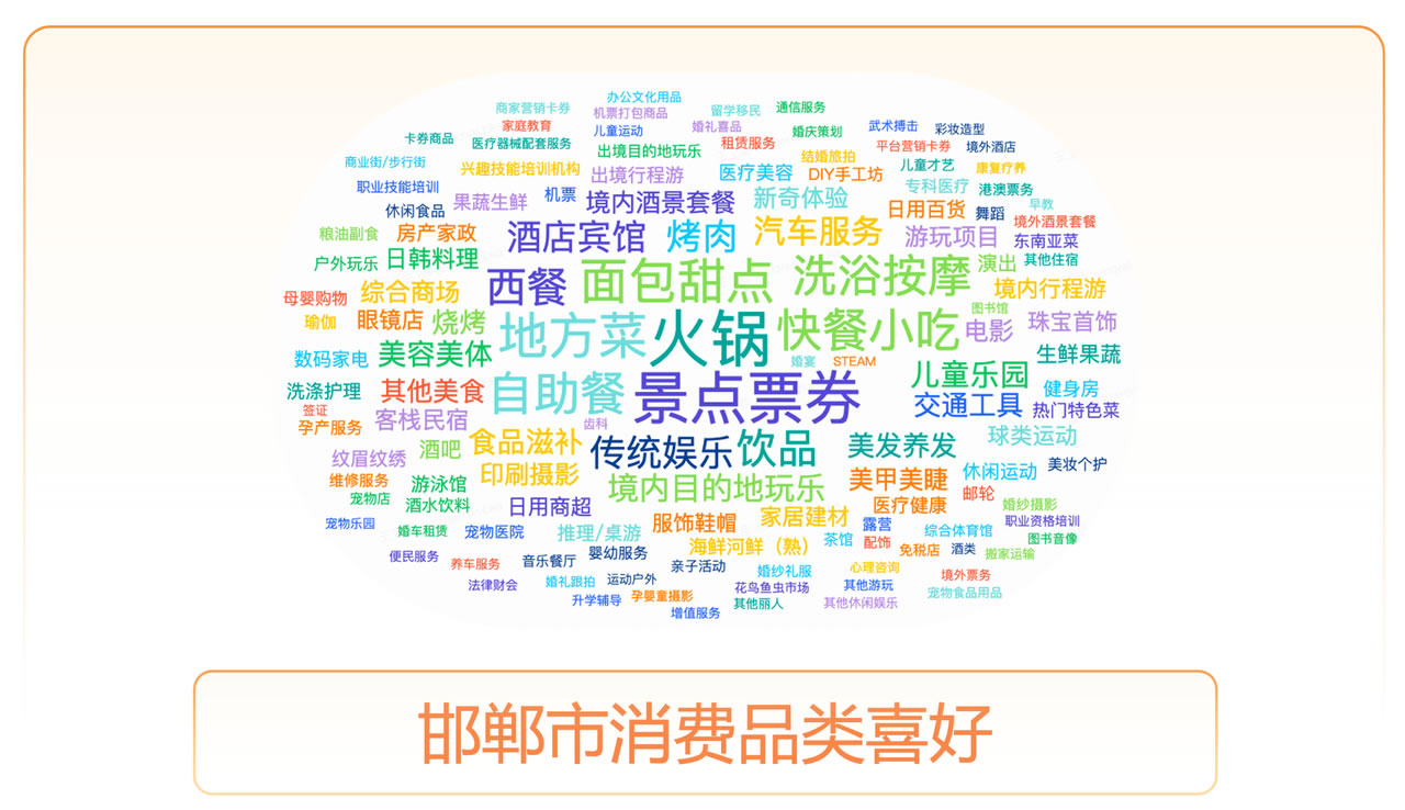 近期,邯鄲在文旅迸發(fā)出無限活力,暑期、春節(jié)出現(xiàn)了兩次明顯的交易高峰,主要表現(xiàn)在游玩、美食、休閑娛樂賽道,在TOP100商家中這些賽道占據(jù)了63.54%的交易份額,強勁的爆發(fā)系數(shù)讓我們看到了邯鄲文旅的巨大潛力。
