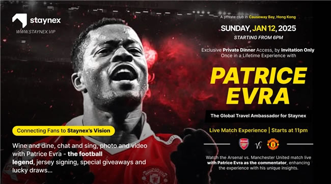 新加坡STAYNEX.VIP WEB3酒店入駐平臺攜手曼聯(lián)傳奇球星在香港銅鑼灣高級私人會所將舉辦2025年高級VIP跨年榮譽晚會。