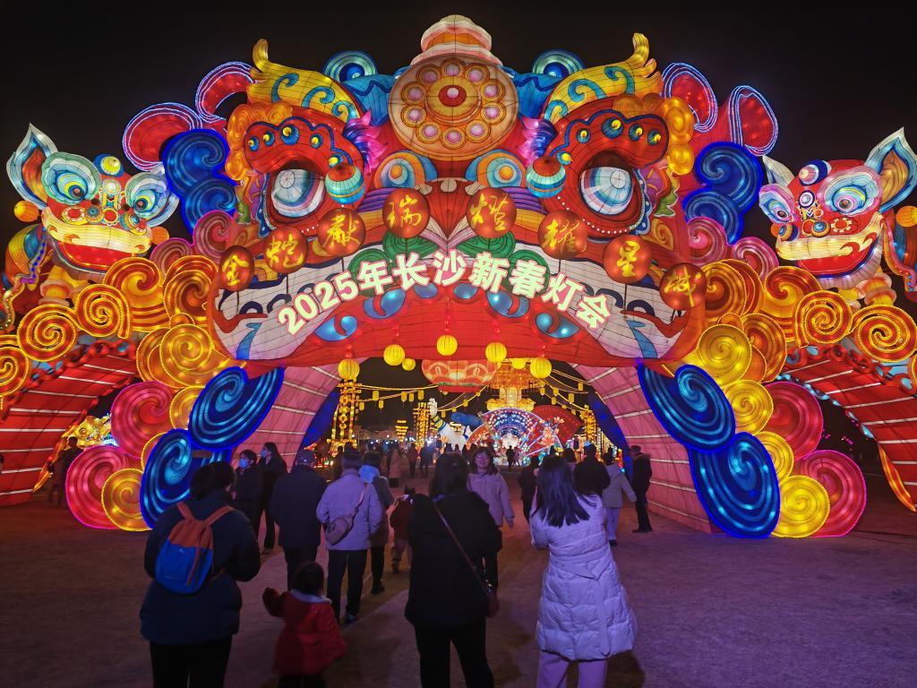 這是在華誼兄弟(長沙)電影小鎮(zhèn)舉辦的2025年長沙新春燈會(huì)現(xiàn)場。新華社記者白田田 攝