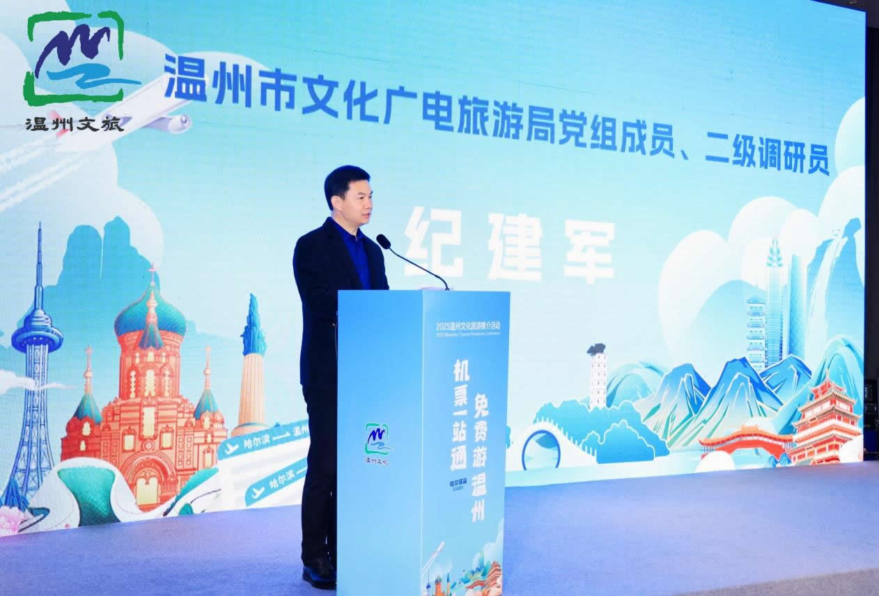 溫州市文化廣電旅游局黨組成員、二級調(diào)研員紀(jì)建軍在致辭中強調(diào),溫州作為中國山水詩發(fā)祥地,近年來圍繞“國際化休閑旅游度假城市”目標(biāo),打造了雁蕩山、楠溪江、百島洞頭等標(biāo)志性景區(qū),并通過沉浸式戲曲、夜間消費集聚區(qū)等新業(yè)態(tài)激活文旅市場。他特別提到溫州“六個最”——好景、好味、好戲、好夜、好禮、好情,邀請哈爾濱游客感受甌越文化的獨特魅力。