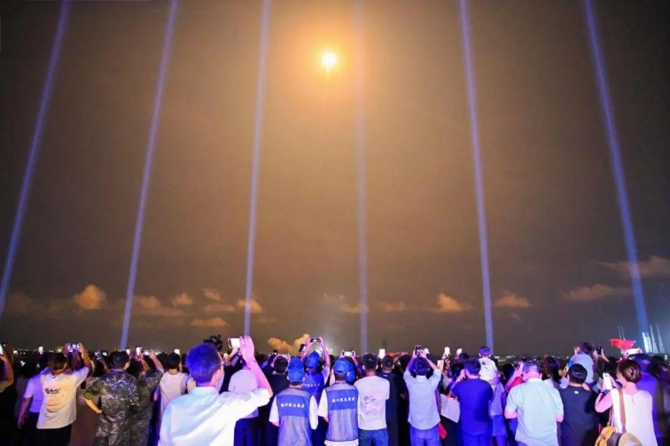“5,4,3,2,1”——火箭的火焰照亮夜幕,平臺的光束射向天際……19時50分,火箭發(fā)射升空,游客們舉著手機記錄,現(xiàn)場歡呼聲陣陣。“很興奮、很震撼,感覺一伸手就能‘抓’到火箭。”延鈺菲說。