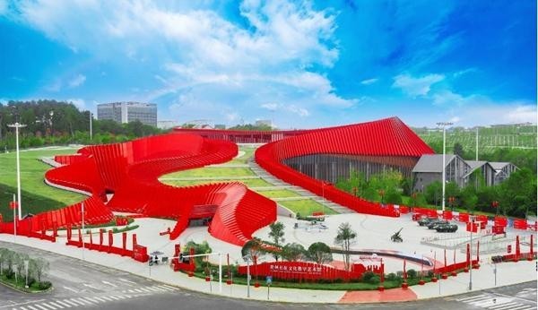 貴州長征文化數(shù)字藝術館(紅飄帶)建筑外觀,該建筑以“地球的紅飄帶”為主題,外觀設計參考“中央紅軍長征路線圖”。