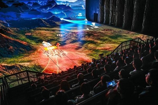觀眾在全維度影畫場館里重溫遵義會議的歷史場景。