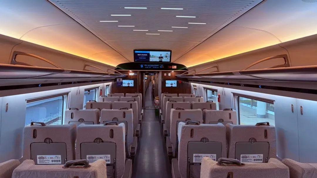 以復(fù)興號(hào)智能動(dòng)車(chē)組為例:二等座通常采用“3+2”式排列,從左到右依次是ABCDF,A和F靠窗,C和D靠過(guò)道,B座位于A和C座位中間。