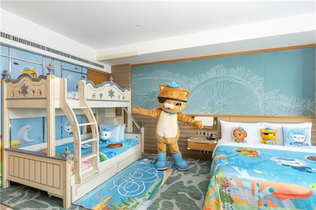 新推出的“海底小縱隊(duì)主題房”,以熱門動(dòng)畫(huà)片《海底小縱隊(duì)》為藍(lán)本,結(jié)合動(dòng)畫(huà)人物IP形象及海洋元素,設(shè)計(jì)了多種房型,為親子家庭打造了一個(gè)充滿童趣與探險(xiǎn)氛圍的親子空間。