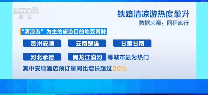 旅游平臺數(shù)據(jù)顯示,“清涼游”為主的旅游目的地受青睞。貴州安順、云南楚雄、甘肅甘南、河北承德、黑龍江漠河等城市最為熱門,其中安順酒店預訂量同比增長超過20%。