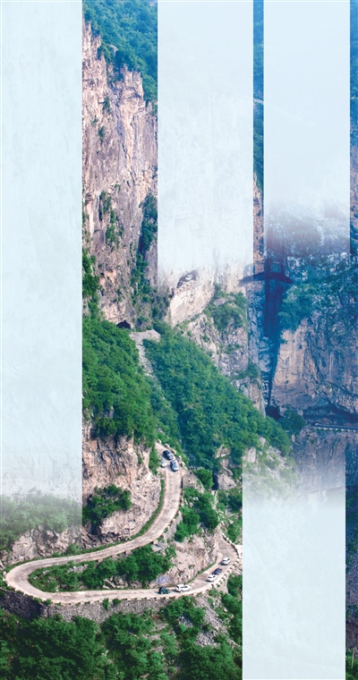 錫崖溝掛壁公路呈“之”字形走勢,全長7.5公里,高差500米,彎道接著一個彎道、懸崖連著一個懸崖。