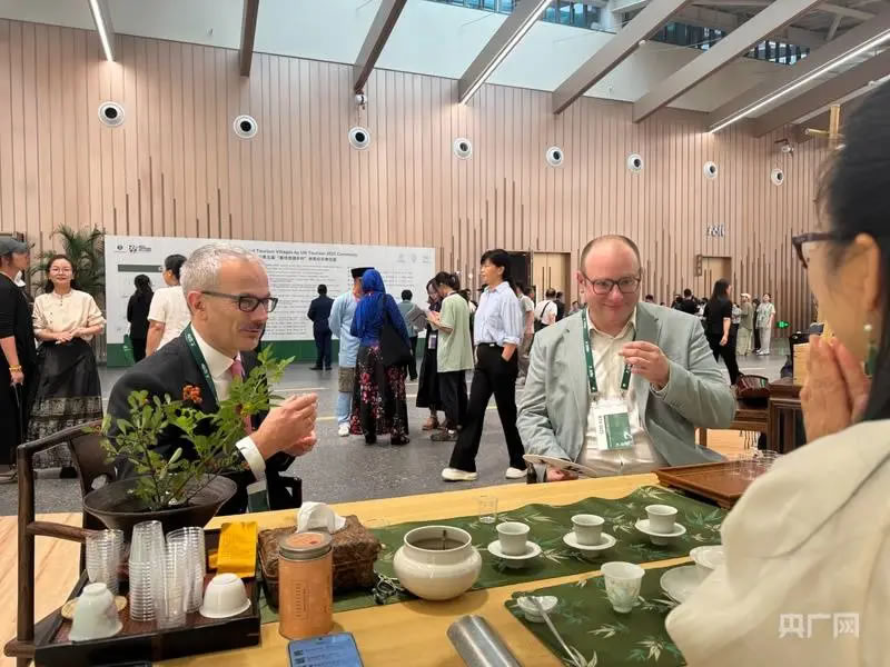 頒獎(jiǎng)儀式現(xiàn)場(chǎng),外賓品茗安吉白茶(央廣網(wǎng)記者 項(xiàng)楠 攝)
