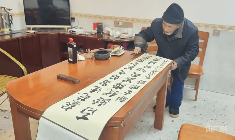 “百歲老人”何茂基揮毫潑墨(央廣網發(fā) 郭名德 攝)