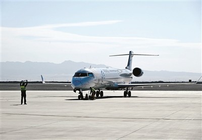 昨日,敦煌至哈密冬春航季首航航班降落在敦煌莫高國(guó)際機(jī)場(chǎng)