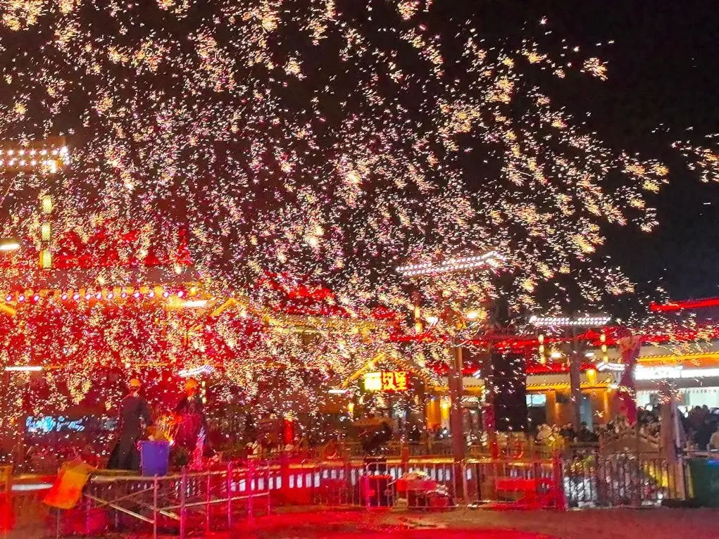 在湖南省懷化市鶴城區(qū)榆樹(shù)灣·青春廣場(chǎng),一場(chǎng)“非遺+祈福”的盛典將節(jié)日氣氛推向高潮。元旦當(dāng)天,儺面舞者隨著鼓點(diǎn)騰躍,神秘古樸;傳承人赤腳踏上36把鋼刀搭成的“刀山”,引來(lái)陣陣驚嘆。夜幕降臨,打鐵花表演現(xiàn)場(chǎng),傳承人將鐵水拋向空中,再用木板奮力擊打,千點(diǎn)萬(wàn)點(diǎn)金花四濺,打造出“火樹(shù)銀花不夜天”的絕美景象。
