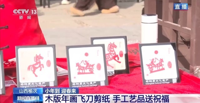往前走就是各類手工藝品展臺(tái),木版年畫、石板拓印都能現(xiàn)場(chǎng)體驗(yàn)參與。一旁的剪紙藝人剪刀翻飛,紅紙?jiān)谥讣饬鬓D(zhuǎn)間,吉祥的福字與靈動(dòng)的生肖便躍然紙上。