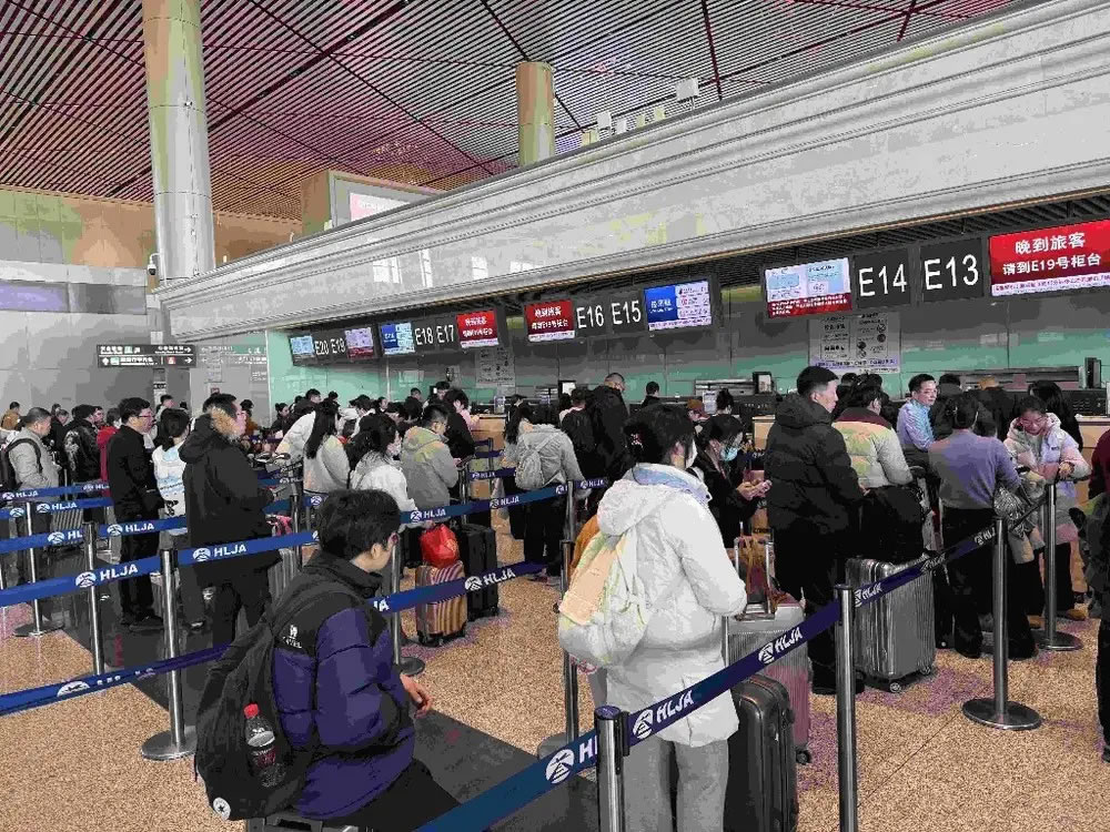 春節(jié)假期以來,哈爾濱機場客流持續(xù)高位運行,呈現(xiàn)出“客流量大、寬體機多、聯(lián)動性強”的運行態(tài)勢。根據(jù)預(yù)測,2月20日起,哈爾濱機場進入返程高峰期,其中2月23日(正月初七)為整個春運期間客流峰值日,預(yù)計當(dāng)天運送旅客超10萬人次,返程高峰期呈現(xiàn)游客集中返程,峰值高、周期短的特點。據(jù)統(tǒng)計,從哈爾濱飛往北京、上海、廣州、深圳、重慶等城市的部分航班客座率接近100%,從北京、上海、廣州、深圳、?凇⑷齺喌瘸鞘酗w往哈爾濱的航班客座率達(dá)到90%。