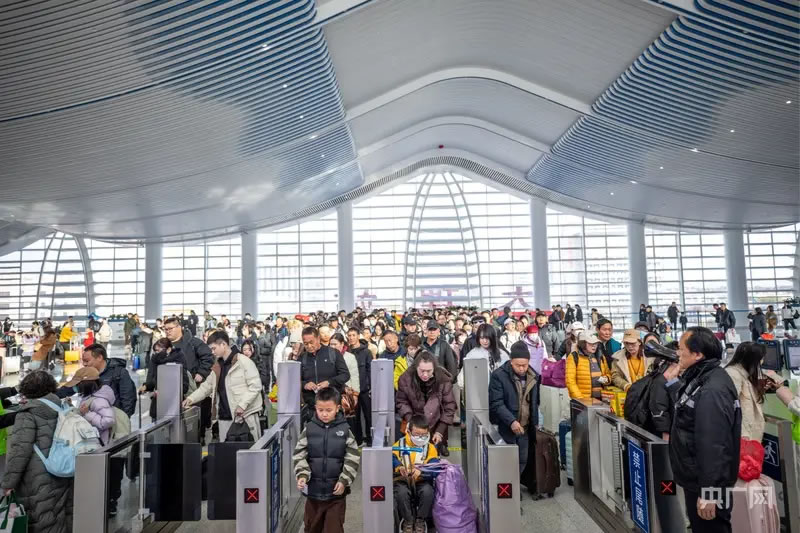 面對激增客流,鐵路部門動態(tài)優(yōu)化列車開行方案,日均開行旅客列車超470列,累計增開臨客列車340列,并在客流高峰期開行夜間動車26列,暢通省內(nèi)外客流通道。2月22日至24日迎來返程客流高峰,三天日均發(fā)送旅客51.6萬人次,其中2月23日發(fā)送旅客達53.9萬人次,創(chuàng)假期單日發(fā)送量新高。