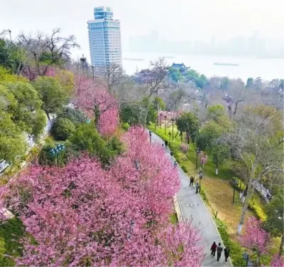 正在打造“世界級賞櫻目的地”的武漢,已實現(xiàn)“出門即賞櫻、移步皆春光”的全域賞櫻格局。數(shù)據(jù)顯示,全市櫻花種植總量超50萬株,涵蓋早、中、晚多個花期品種,分布在景區(qū)、公園、江灘、道路、社區(qū)等各個角落,形成連片成海、點線面結合的櫻花景觀體系。
