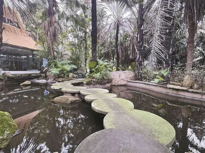 走進(jìn)植物園棕櫚植物區(qū),在導(dǎo)航軟件搜索“棕野云澗”,循著指引便能看見一串圓盤狀石橋貼著水面蜿蜒向前,橋邊棕櫚高低錯(cuò)落,粗壯樹干與垂落枯葉交織出一片幽深景致。站在橋頭細(xì)看,熟悉感撲面而來——這正是最近被不少網(wǎng)友反復(fù)“考古”的1986版《西游記》取景地之一。不少網(wǎng)友留言說,“看了這么多年《西游記》,第一次知道竟然在廈門拍過”“怪不得植物園這么眼熟”。也有一些本地人表示,這并非“冷知識”,只是時(shí)間過去太久,許多人一時(shí)沒把童年記憶和眼前景象對上號。